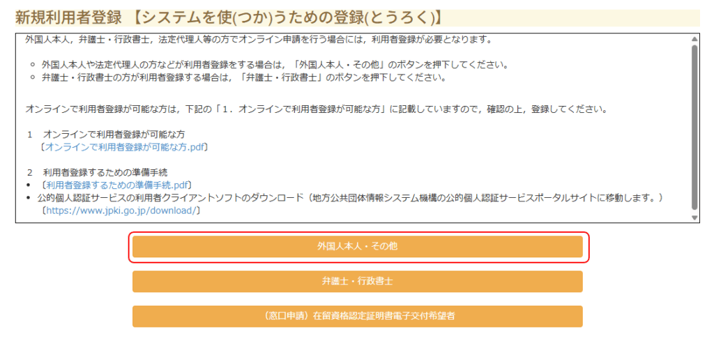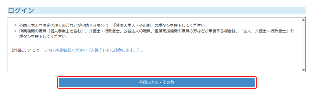 ログイン画面が表示されるので「外国人本人・その他」をクリックします。