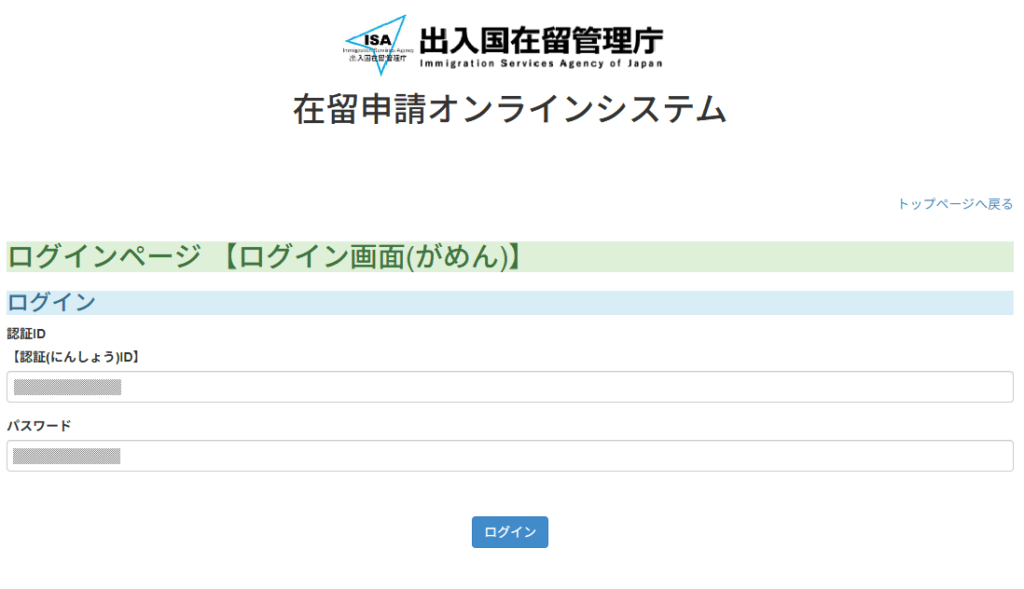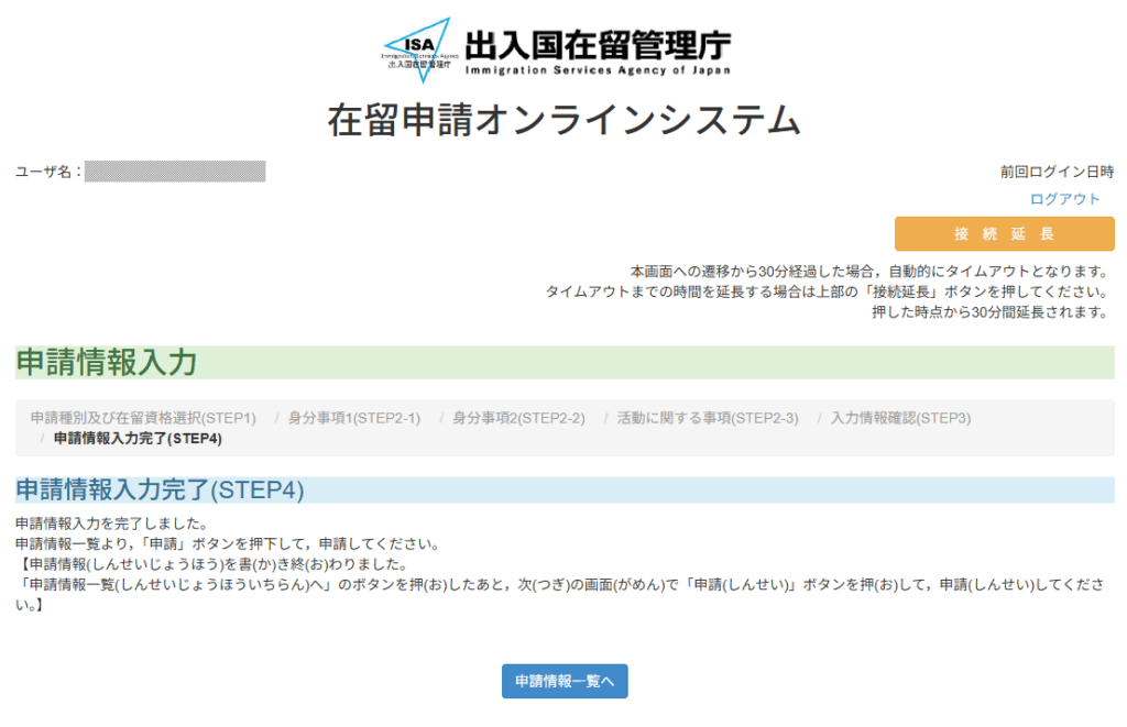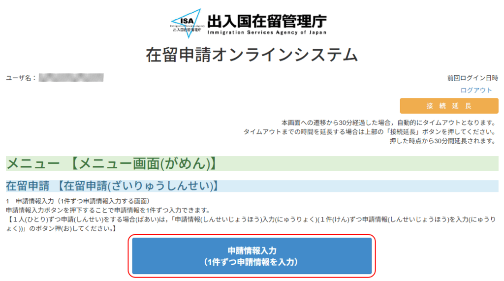 ここまでできたらおインラインで在留期間更新許可申請をします。