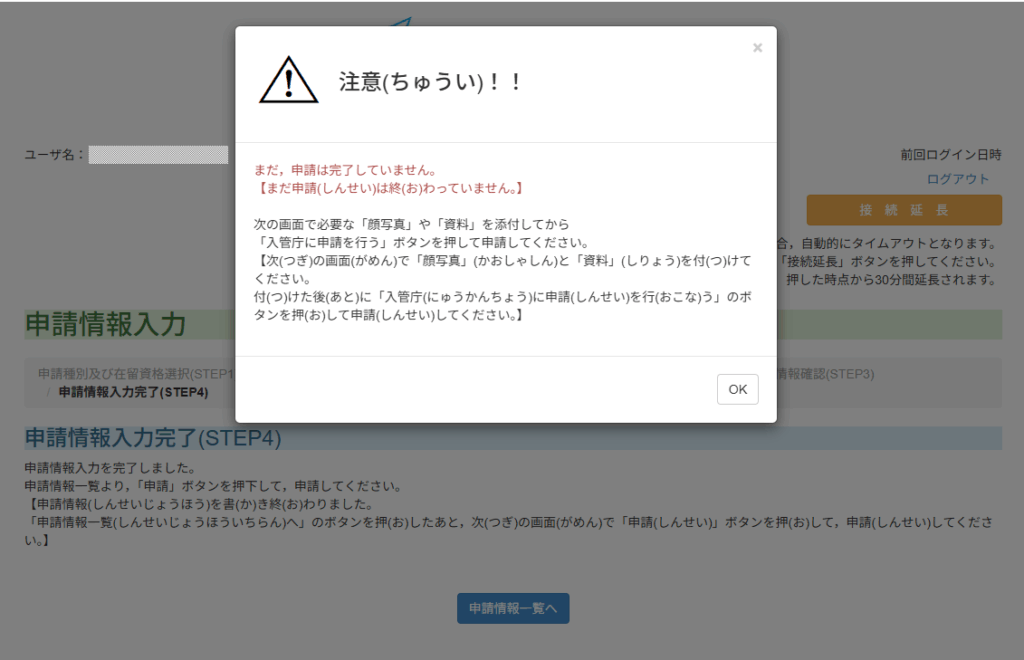 - 3か月前になったので在留申請オンラインシステムで在留期間更新許可申請をしようとする