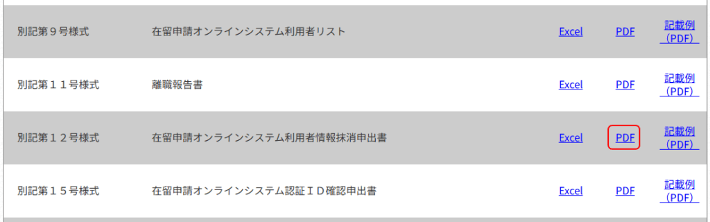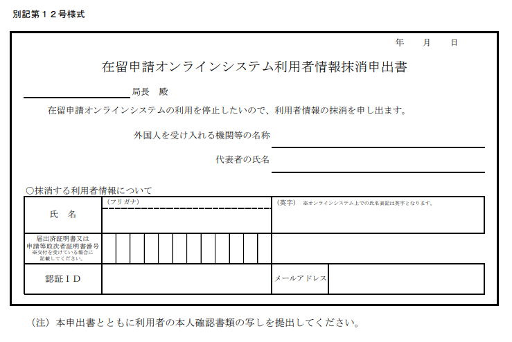 在留申請オンラインシステム利用者情報抹消申出書は以下にあります。